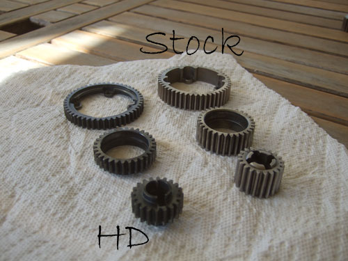 Here is a comparison of the stock gears on the right and Heavy Duty gear on the right.