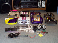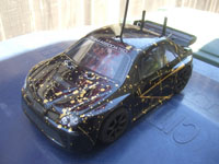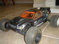History: Once again I bought another car from my friend and for the same price of $100. This car had an upgraded carbon fiber chassis, hitech servo, lrp esc, big block motor, extra tires, and alot of extra parts. I traded this car with all the same parts except for the electroncis. It was upgraded to a quark 33amp brushless esc, castle 8000kv brushless motor, and thunder power 2 cell lipo. In return I got a Kyosho Inferno GT with extra parts and 2 bodies (the only problem was the broken engine). |
