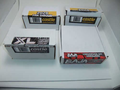 Here is the Castle Creation brushless conversion kit for the HPI Baja 5B. I traded my Brushless LST XXL with Mamba Monster Max ESC and CC 2200KV motor for this brushless conversion kit.