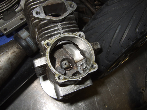 The same day I got the Kyosho Inferno GT from a trade, I found another IGT on craigslist for only $25. Yes I said $25 and not $250. When I finally got a hold of the guy selling the inferno on craigslist he told me the only thing wrong is the engine and everything else work perfectly. I still cannot believe that someone is actually selling an Inferno GT for only $25. So a few days later when I was back in the Bay Area, I met up with the guy and everything was exactly what he said. If fact he even included the original TX, manual, and misc parts. This purchase might work out better than planned, because my other IGT has a stripped head. And since this engine is dead I will be able to swap heads and get my other IGT running. My plan is to have 2 running IGT, one will be Nitro and the other will be brushless. |