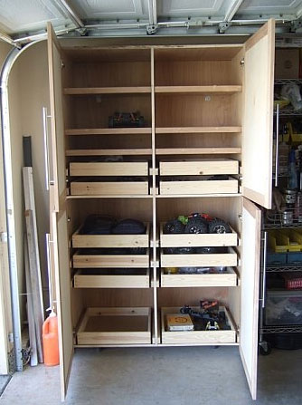 | For the most part this is how the finished cabinet will look like. It will have 12 pullout shelves and 6 regular shelves. The only thing I have left to do is to sand, stain, and varnish. |