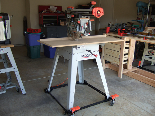 Through Craigslist I found this Ridgid Radial 10" Arm Saw for $175.It was in good condition and I only had to make a few minor adjustments so it would cut perfectly. The first upgrade I bought for this saw is a HTC 2000 universal mobile base. I was able to get it for $25 at rockler with a 50% off coupon.