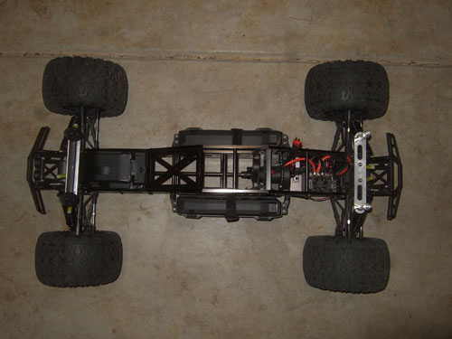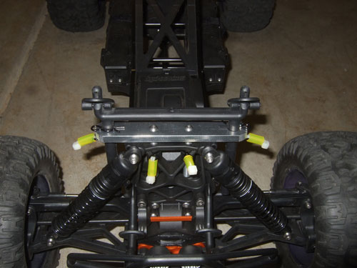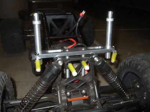 I took the plastic body mounts from the Baja 5T and mounted it to a custom aluminum plate is 1/4 inch thick. I could have used the stock body mounts but it was really weak and not strong enough to support the heavyier 1/5 scale body.