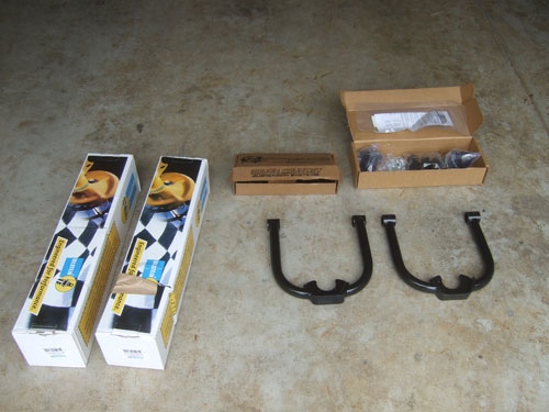 Here is a picture of the everything im about to install: Rough Country 3 inch leveling kit and Bilstein 5100 Struts |